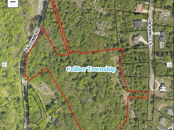 This gorgeous lot offers an amazing opportunity to build your new dream estate on 10+ sprawling wooded acres in Collier Township. With private driveway access from S Cowan and/or Baldwin Road, this residential lot offers the privacy you desire. Conveniently located just fifteen minutes from both downtown Pittsburgh, and Pitt Int'l Airport this this slice of paradise is beautifully wooded with mature hardwood trees on gentle sloping terrain and offers the amenities of public water, natural gas, public sewage, and electricity. Acreage is conveniently located within a short 5-10 minute bike or drive to the Collier Community Center, Panhandle Trail, Settlers Cabin Park, Pittsburgh Botanic Garden, Settlers Cabin Park/Wave Pool, Rennerdale, Oakdale, Heidelberg, Bridgeville, Robinson, Carnegie, I-376 Parkway West, and I-79. This rare opportunity is ideal for anyone seeking to build their dream home nestled in the quiet countryside, while still in the heart of it all.