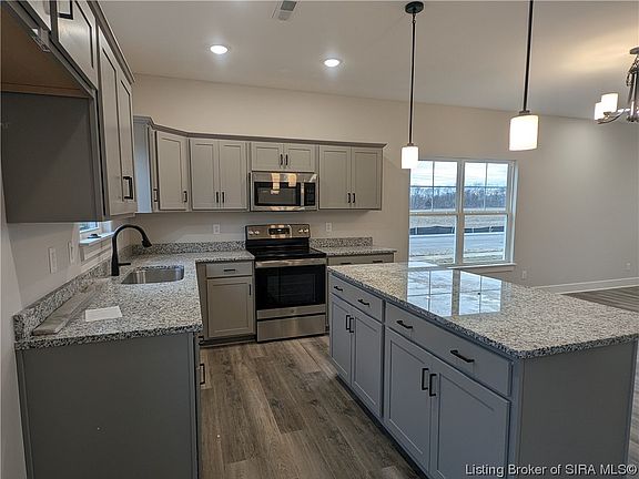 Premier Homes presents it's newest community - Rock Springs! Pictures updated as of 2/18. The “Sapphire” floor plan is a 4 bed / 2.5 bath, 1.5 story home which features open-concept living space and a 1st floor primary bedroom and laundry room. The great room is located at the front of the home, overlooking the spacious covered front porch. The kitchen overlooks the backyard with an expanded patio and includes stainless steel appliances, granite countertops, pantry, and a 6’ island with overhang for seating. The dining space is nestled between the kitchen and great room, perfect for entertaining! On the opposite side of the main floor, the primary suite offers a spacious walk-in closet, en-suite bath with double vanity, water closet, and a large walk-in shower. The laundry room is conveniently located just outside of the primary bedroom. The 2nd floor houses the 3 secondary bedrooms, one with a walk-in closet, and a full bath. This home also includes a 2-car attached garage w/keyless entry & a 2-10 home warranty! Save $$$ toward closing costs by using one of our recommended lenders! The builder is a licensed real estate agent in the state of Indiana.