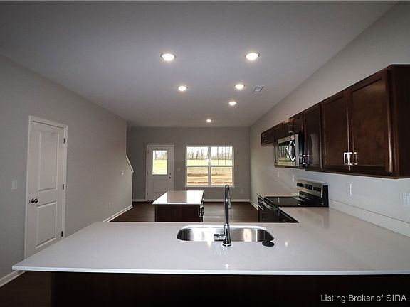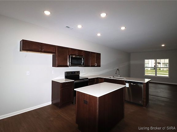 The “Opal” floor plan is a 1.5 story, 3 bed/2.5 bath home with a first floor primary suite and laundry and a flex room on the 2nd floor. Coming from the spacious covered front porch, you enter the home into the large great room. The kitchen is located at the center of the open living space, with an eat-in breakfast nook behind the kitchen, overlooking the backyard. The kitchen provides plenty of space, highlighted by a large island, breakfast bar, walk-in pantry, quartz countertops, and stainless steel appliances. Off the breakfast nook is the primary bedroom and stairs to the second floor. The primary suite provides a huge walk-in closet and an en-suite bath with 6' vanity, water closet, large walk-in shower, and linen closet. Up the stairs to the second floor, you’ll immediately find the flex room – a great space for a playroom, school room, or second living room! Off the flex room are the two secondary bedrooms and a full bath. Save $$$ toward closing costs by using one of our recommended lenders! Builder is a licensed real estate agent in the state of Indiana.