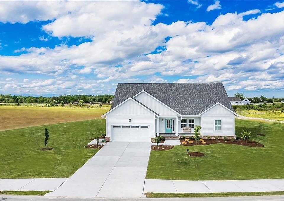 Now selling in Wentworth, country living minutes from the VA/NC state line. 1/2 acre home sites w/15 different floor plans, starting from $319,950. The Marino - Tandem style 3 car garage one story/master down living! This plan is limitless - be sure to ask how the design can transform to a master down with additional master/generational suite down. Breathtaking wide open entry with large formal dining and great room with vaulted ceiling and gas fireplace. Sunny eat-in kitchen with large island, pantry, granite counter tops and access to the covered back porch. Generous master bedroom and glamorously finished master bath with a huge closet. Professionally landscaped front lawn. CCA when using builder preferred lender & atty. The model under construction - call for showing appointments & incentives! NC license #300482. Similar photos.
