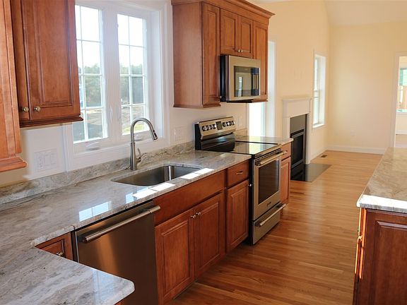 This beautiful home is built to owner's specifications, Open concept floor plan with granite counter tops and center island in kitchen, open to living area with gas fireplace and on to the 14 x 14 sun room with cathedral ceilings, all with gleaming hardwood floors. Separate dining area with bump out bay window. Downstairs master suite includes walk in closet, beautiful tile shower and granite counter tops. 2 additional bedrooms and full bath upstairs, large unfinished bonus room over a 2 car garage, landscaped lot to be admired from your front porch. Many more details and all set within a beautiful community with access to clubhouse with bar, pool table and full gym, driving range and sidewalks. Close proximity to major highways, seacoast beaches and down town Portsmouth!