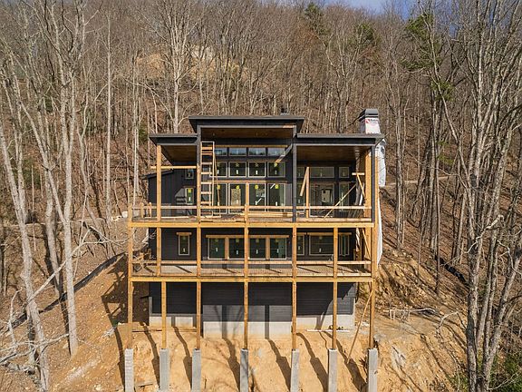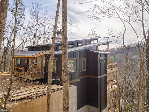New construction contemporary mountain chalet boasts soaring cathedral ceilings, walls of glass, and stunning long range mountain views -- this is the modern mountain lifestyle you've been looking for! Under construction and aimed for completion in Spring, this three bedroom two and a half bath home will feature a beautiful blend of sheetrock, wood and shiplap on interior walls and ceilings, beautiful light wood floors on the main level and matching LVP on the terrace level, bold kitchen cabinetry with quartz countertops, THOR appliance package w/ gas range, stunning interior and exterior fireplaces on the main level and an additional F/P in the terrace den -- the list goes on! With some of the best views in Fannin County, this canopy home won't last long; call today!