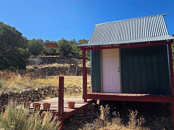 This 5.7 acre property features a gated driveway leading to a spacious, secluded campsite. It includes a covered picnic area and a sturdy storage shed/bunkhouse (8x10) with metal siding and roof, 2x4 walls, post and beam piers set in concrete, and hardwood floors. This is the perfect retreat in the fresh Rocky Mountains, offering peace, privacy, and views. Surrounded by Piñon Pines and Junipers in the Sangre de Cristo mountain range, it's just minutes from the Rito Seco open space with hiking trails and Rito Seco Creek. Ideal for escaping the city with family and friends or keep to yourself!!