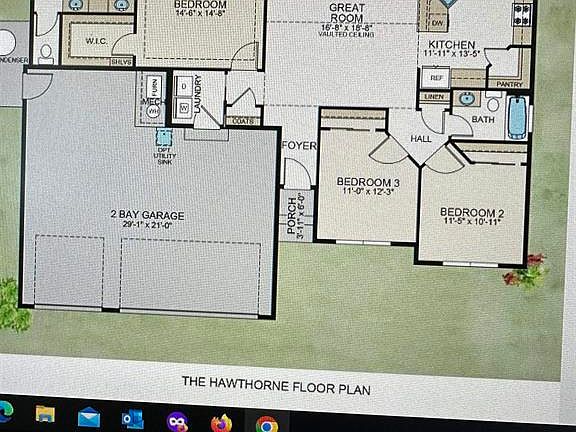 Popular Hawthorne plan (garage/utility room extended version) private primary suite with walk in closet, luxurious bathroom with 8 ft. dual basin vanity, soaking tub and 5 foot tiled shower. Two additional bedrooms plus bathroom with private hall entry, deluxe kitchen with large island plus oversize bay windowed dining area adjacent to rear covered patio. Nine foot plus vaulted ceilings, stepless exterior entry design. Custom stucco/stone exterior, oversized three car garage with extra depth workshop/storage area. Upgrade interior finishes with granite tops, soft close cabinetry, LV flooring and stainless appliance package. Construction to start soon. Color selection and finishes are available at decorator center. Size of lot offers home separation and privacy.