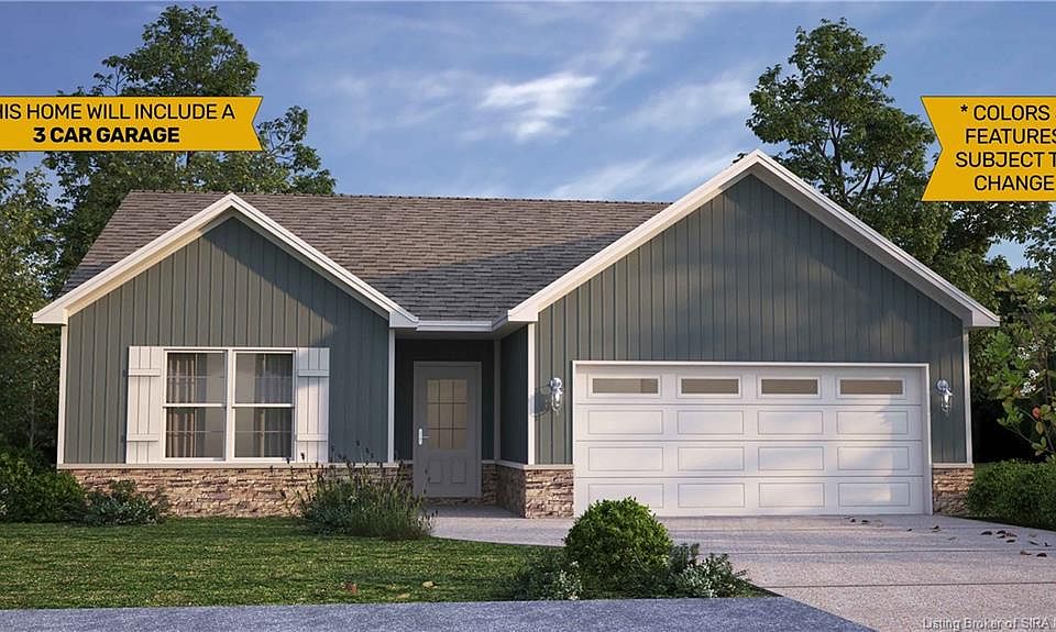 Pictures updated as of 2/2. Premier Homes of Southern Indiana is proud to present the beautiful 'Juliana' floor plan! This gorgeous 3 Bed/2 Bath home features a covered front porch, spacious great room, open floor plan, 1st floor laundry room, and 3-car garage! The beautiful eat-in kitchen includes stainless steel appliances, granite countertops, large kitchen island, pantry closet, and roomy breakfast nook that walks out to the covered back patio! The Laundry Room includes is spacious and includes additional storage area. The Primary Bedroom offers elegant trey ceiling and private bath with double vanity and large walk-in tile shower, and walk-in closet with french doors. This home also includes a 3-car attached garage with keyless entry and a 2-10 home warranty! Builder is a licensed real estate agent in the state of Indiana.
