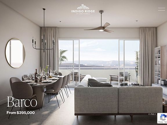In Phase One, IF YOU WANT, YOU MAY SELECT THE BARCO with1,265 SF WITHOUT THE STUDIO ON THE FIRST LEVEL for $395,000. This unit will be built in Phase One on Lots 61 and 69. The BARCO-S home for $465,000 will have 1503 sf, 2 bedrooms with Master AND family suite on upper level along with two private bathrooms, Living Room with balcony and Dining-Kitchen and a Studio apartment with 238 SF and a separate entrance and Patio. Those will be built on Lots 60 & 68. The flooring for the first level is polished cement and the upper level flooring is LVT or carpet. Two Roof Patios provides extra common space for occupants and offers elevate views. However, you can register your interest in this model for all Phases. Registering potential buyers who are interested in one of the newest communities in the Page Lake Powell area! The Retreat at Indigo Ridge is a private gated community with 127 homes in five home styles. All homes have stylish interiors with resort style amenities including: Pool and Spa, Pickleball Courts, Kids Play Park, Grill and Firepits, Viewpoint Lawns, Movie Lawn, Dog Park and Trails. This area is approved for Vacation/Nightly Rental