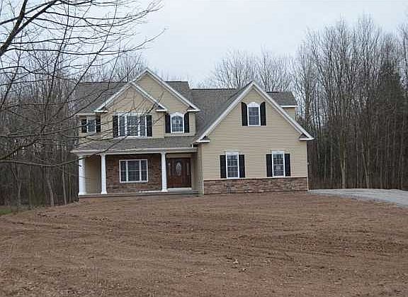 Expect to be impressed by this upscale 2400SF plus unfinished bonus room on 2nd floor (approx 250 more square feet roughed in). Energy wise construction, volume ceilings, custom hardwoods trim package, solid surface countertops, tiled baths.