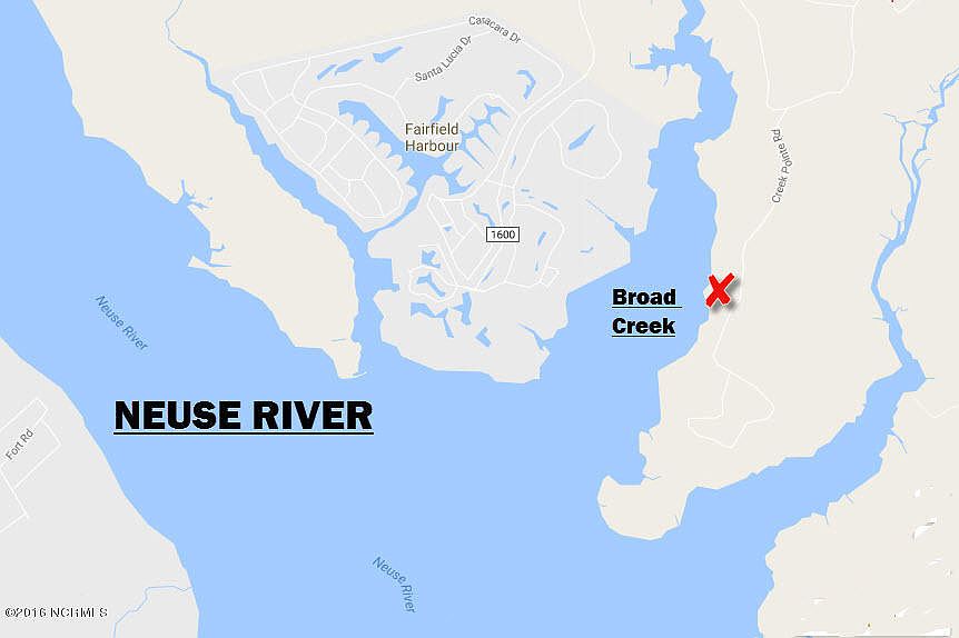 Nature-lover's Waterfront Dream. Wonderful Opportunity to own big acreage on Navigable Upper Broad Creek. This bank-owned lot is priced to sell and offers a rare chance to own waterfront in this price range. Just over 30 minutes from downtown New Bern this community allows ease of access to town yet has the feel of a complete getaway. Acreage is divided by access road with part of the land on the waterfrontage and the rest across the road. Planned community with all lots offering space and privacy.