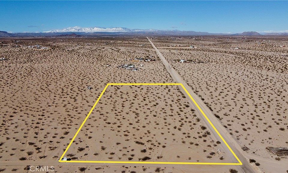 Water at the street, power close by, good access, 5 acres, what more could you ask for? Less than 10 minutes to the Joshua Tree Lakes Campground and event venue, 20 minutes or so to down town & the National Park entry. Zoned RL for many possible creative uses. Campgrounds, residential, agricultural, event venues, even renewable energy generation to name a few. Wide ranging views & stunning starry nights. Feel free to take drive on by: Hwy 62 to Sunfair, Continue onto Coyote Valley, R on Winters, lot on right on corner of Whitaker. Across from 66670 Winters Rd 34.236381 -116.208466. Copy and paste the coordinates to google maps for a pin with the location. *Lot lines in photos estimated.