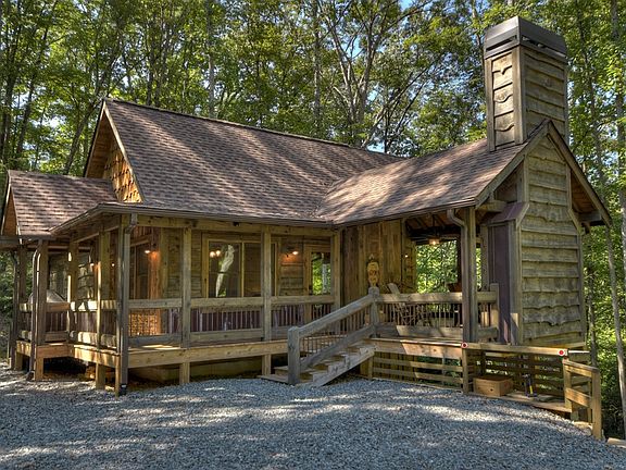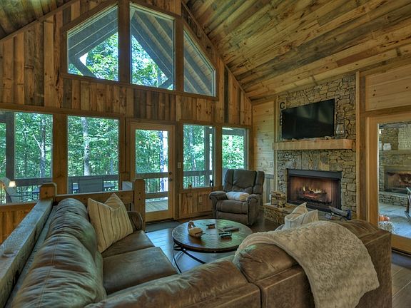 Charming New Construction Cabin boasts Rustic Flair Inside & Out..."not your cookie cutter" this spacious 3BR/2.5BA with oversize bunk room jewel boasts comfort and custom upgrades..soaring ceilings & tons of glass allow for a light, open interior, rock fireplace adorns large living area, stainless appliances & custom cabinetry, spacious tiled bathrooms, full finished terrace level with large den, wet bar & guest quarters...outdoor wrap around "gathering porch" with woodburning fireplace...surrounded by long range views of the mountains, fabulous fire pit and picnic area, rustic mix of siding for ultimate curb appeal, perfect for that much needed getaway cabin or great rental potential-tucked away, yet just minutes from The Cohutta Wilderness Area, historic Downtown Blue Ridge, Toccoa River, Lake BR, and more - located in the brand new Majestic View Subdivision with all paved roads...this one has it all!