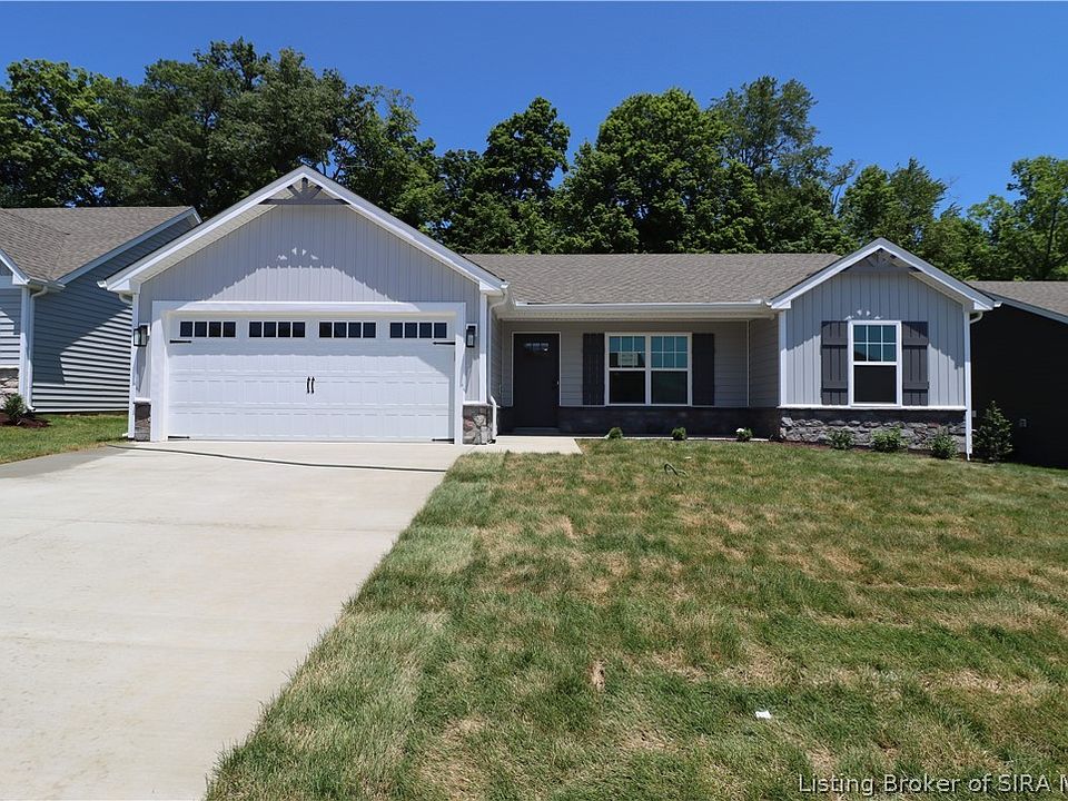 Pictures updated as of 4/30. Premier Homes of Southern Indiana presents the captivating 'Ayden' floor plan! This 3-bed, 2-bath home exudes luxury with a grand covered front porch, spacious great room, and gourmet kitchen featuring stainless steel appliances and granite countertops. Retreat to the elegant primary suite with trey ceiling and spacious walk-in closet. Enjoy the convenience of split bedrooms, a laundry room, and a 2-car garage with keyless entry. Plus, a 2-10 home warranty offers peace of mind. Experience the pinnacle of modern living with the 'Ayden' floor plan—where every detail is crafted to elevate your lifestyle." Save $$$ toward closing costs by using one of our recommended lenders! The builder is a licensed real estate agent in the state of Indiana.