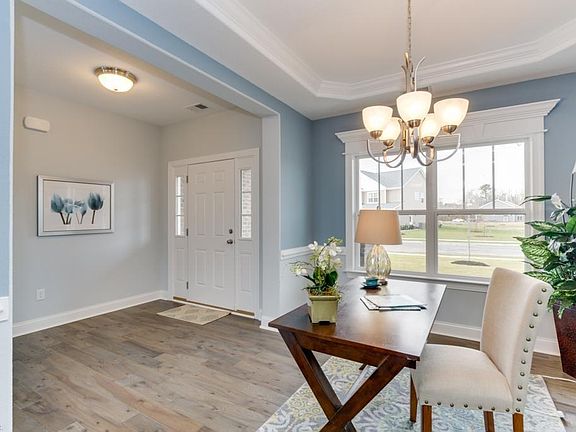 We are excited to be offering our 5 best selling floor plans from throughout Hampton Roads in one location in Wentworth at Currituck Reserve is only mins from the VA/NC line, giving the 'close to it all' convenience while providing ½ to ¾ acre lots! The Warwick 2 is a 5 bedroom, 3 full bathroom, 2 story home! Enter the foyer into the open living room & eat-in kitchen with a pantry, along with the dining room. Continue to the 1st floor bedroom & full bathroom. Then venture to the 2nd floor master suite with a walk-in closet & master bathroom with separate tub & shower along with 3 addition bedrooms. Conveniently located to the Moyock Library offering Preschool & Toddler Story times, Genealogy & Computer classes & more! Just around the corner are 2 free public boat ramps providing access to the North West River & Tulls Bay. Up to 3% CCA with use of our builders preferred lender & closing attorney. Ask about our military appreciation incentives! NC license #292970. Similar photo.