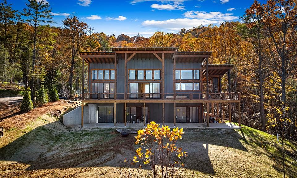 Acreage of Awesome: 3 Acres of Mountain Modern Magic Awaits Imagine waking to birdsong and a soft breeze, your view sweeping across 3 acres of rolling hills where the Blue Ridge Mountains seem to bow in greeting. This new build almost complete 4-bedroom, 3.5-bath Mountain Modern haven is like a warm mountain embrace—fully furnished with high-end touches upon completion, ready for your sky-high adventures. The gentle lot offers endless options: a croquet lawn, pickleball court, mini-golf course, or private pool. Enter to hardwood floors blending with Wood and Drywall for a natural feel. The kitchen shines with quiet high-end appliances, cool granite counters, custom cabinetry for easy organization, and a pantry big enough for a wine collection. It connects to a spacious dining area for shared meals, leading to the great room's gas log fireplace and wall of windows flooding the space with long-range views. Head outside to the generous deck and exterior fireplace for storytelling under the pines, with the land inviting your ideas on those soft slopes. The terrace level adds that extra layer of comfort: A versatile den/media lounge complete with a wet bar for casual cocktails and binge-watching sessions, a second primary suite designed for quiet downtime, and two bright guest bedrooms sharing a luxurious bath with relaxing amenities and natural light. A quick 5-mile drive to Blue Ridge's eats, music, and river paths, this spot launches your Appalachian outings. Why limit to square feet when acres of wonder wait, almost yours? Your mountain base calls—jump in!