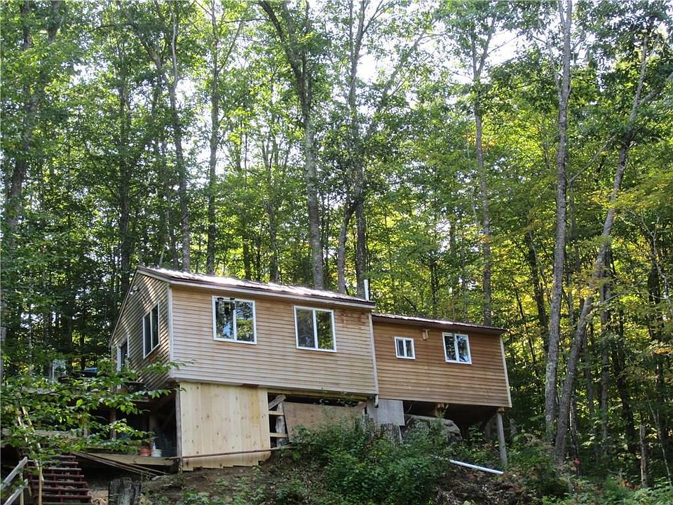 Private, off the grid year round home perfect to escape from it all or use as a hunting cabin the Maine woods. Open concept living/kitchen/dining rooms with cathedral ceiling and warmed by a propane stove. Wood floors complete this home. Cozy loft for storage or extra sleeping area. Open deck with views over the 1+ acre lot. Generator powers lights & well pump. Septic will be installed before closing. Perfect for those that want to live simply and off the grid.