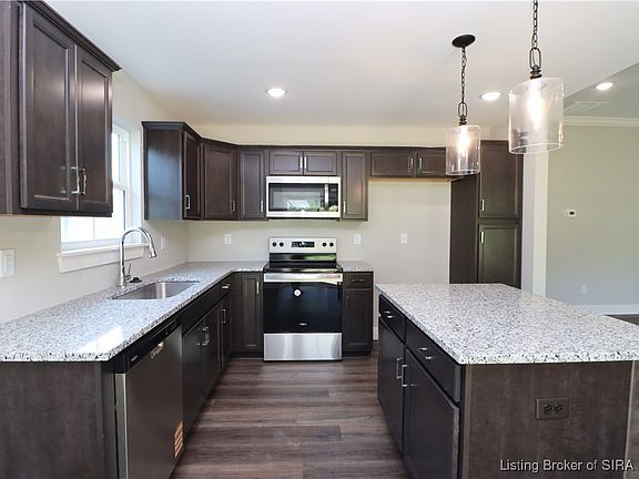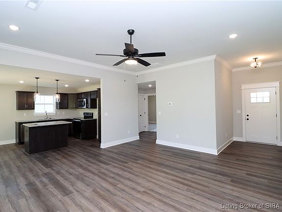 Premier Homes of Southern Indiana presents the beautiful 'Samantha' floor plan! This 3 Bed/2 Bath home features a cozy front porch, foyer, open floor plan, split bedrooms, and spacious great room! The eat-in kitchen features stainless steel appliances, granite countertops, island, pantry cabinet, and roomy breakfast nook w/sliding door that leads out to the covered patio. Primary suite offers an elegant trey ceiling, spacious walk-in closet, and en-suite bath with double vanity, water closet, linen closet and large walk-in shower. This home also includes a 2 car attached garage w/keyless entry & a RWC home warranty! Save $$$ toward closing costs by using one of our recommended lenders! Builder is a licensed real estate agent in the state of Indiana.