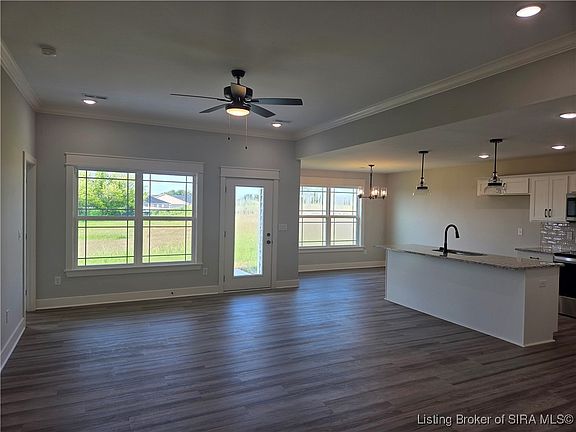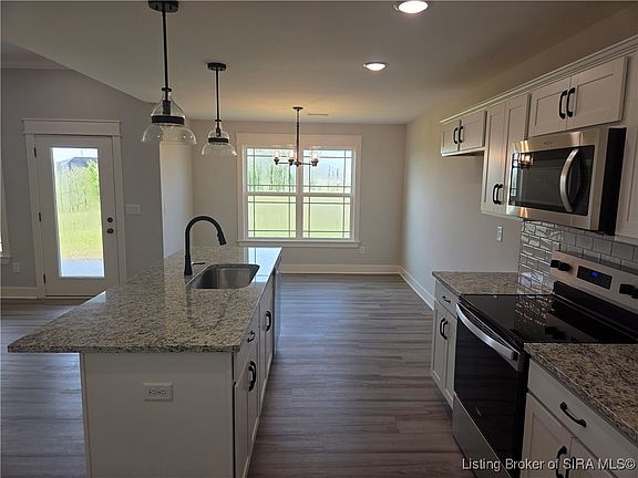 Premier Homes of Southern Indiana presents the beautiful 'Juliana' floor plan! This 3 Bed/2 Bath home features a cozy covered front porch, foyer, open floor plan, laundry room with pocket door, and spacious great room that walks out to partially covered patio! The eat-in kitchen offers stainless steel appliances, granite countertops, pantry, and roomy breakfast nook. Primary suite offers an elegant trey ceiling and en-suite bath with double vanity, water closet, large walk-in shower, and spacious walk-in closet. This home also includes a 2 car attached garage w/keyless entry & a RWC home warranty! Save $$$ toward closing costs by using one of our recommended lenders! Builder is a licensed real estate agent in the state of Indiana.