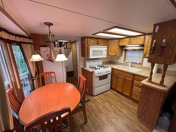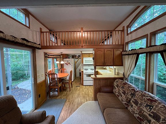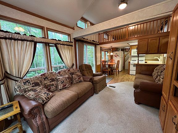 Listings has changed. There are now two lots included in this listing. Nestled in Pathfinder Village, this inviting 2008 Brookwood park model offers a fantastic seasonal getaway. Inside, you’ll find a large double loft for extra sleeping space or storage, along with a sunken main bedroom that adds comfort and privacy. The open layout provides a bright living area and efficient kitchen, making it easy to relax and enjoy. Step outside to a concrete slab patio and wooden deck, perfect for outdoor dining or entertaining. Surrounded by trees and nature, this lot offers privacy while being part of the welcoming Pathfinder Village community. An excellent opportunity for a Northwoods retreat or summer escape in a sought-after location. Amenities at Pathfinder include; secure entrance gate, pool, mini & disc golf, 9 hole golf course, tennis & basketball courts, playgrounds, community buildings, coin laundry, seasonal entertainment and on-site store. Water available May 1st-Oct 1st.