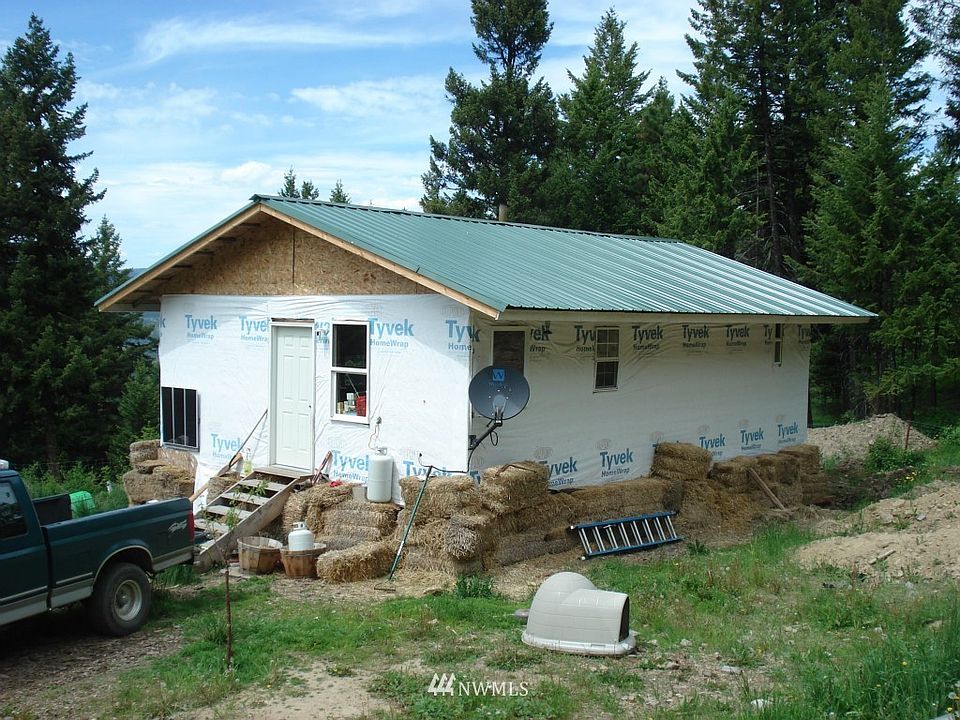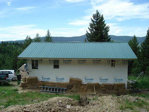 Unfinished home on 10 rural acres nestled in the trees with a nice mountain view. Very private location. Nicely treed property only 5 miles from Republic.