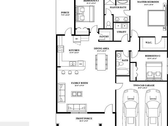 Two-car garageOpen concept floor planSpacious pantryWalk-in closetCabinet spaceGarden tubWalk-in laundry room