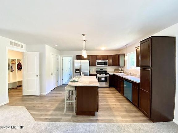 Highly desired Rockford schools new ranch home featuring over 2230 sq ft of finished space, located in Wellington Ridge. As you walk in you notice the large formal dining room, a spacious functional kitchen, island/snack bar, tile back splash, stainless steal dishwasher, range, microwave/hood, refrigerator. Home has a great open floor plan, slider to the beautiful deck with stairs to the yard. Mud room with lockers and main floor laundry. A beautiful master suite with walk-in-closet, and double sinks.The main floor features 2 additional bedrooms and another full bath. Extra Garage space for the toys with a bump.A Huge Finished family room in the lower level with 2 future beds and bath, tons of storage. Buyer can choose colors and selections. Call for details!
