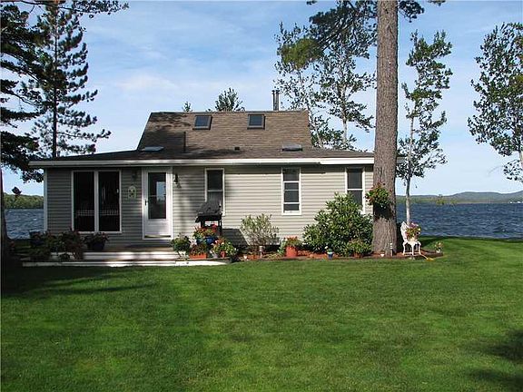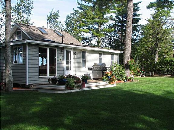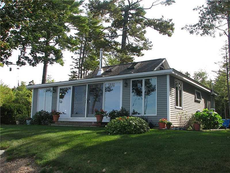 Well kept year round cottage at water's edge w/beach, totally renovated, skylights, breathtaking views, beautifully landscaped grounds, four bay heated garage w/laundry room & game rm. Completely self sufficient off the grid living, room for expansion.