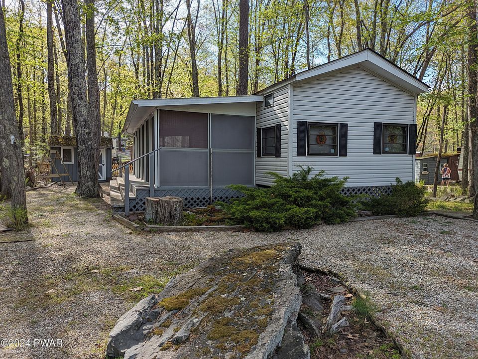 Bring the family and enjoy a great vacation in an active recreational park. This home away from home park model has 1 bedroom and a sleep 4 bunkroom, living dining and 1 bathroom. A large screened enclosed porch makes for double the space. Property is level and has a large shed for the essentials and a fire pit in the back to toast hotdogs and marshmallows. Fun for all.