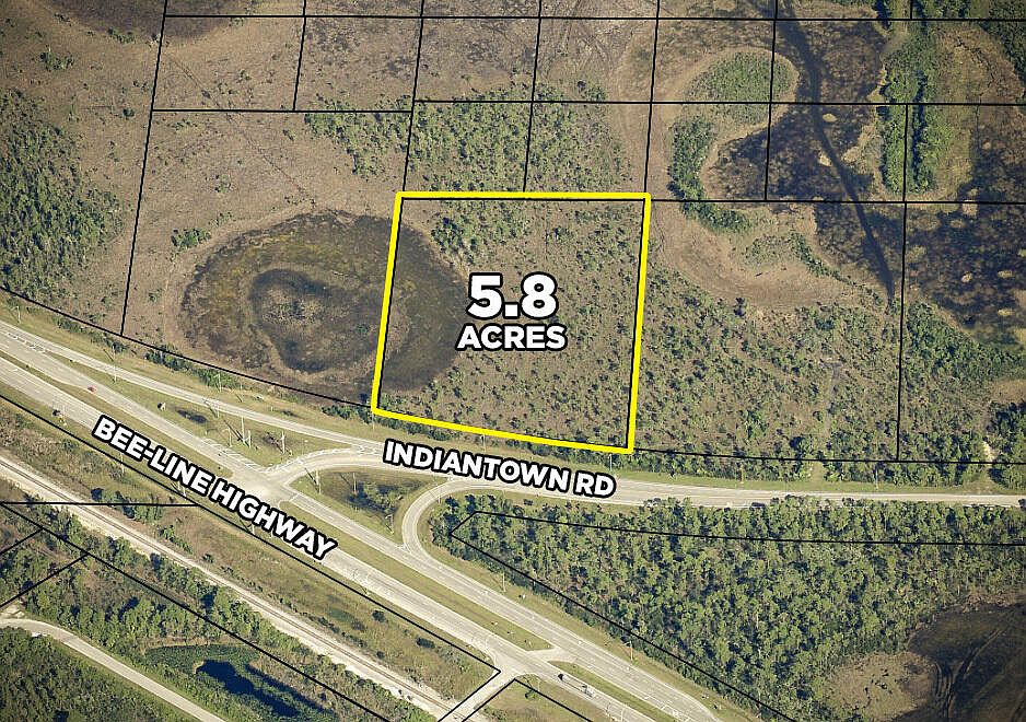 This 5.8 acre lot has an excellent location directly on Indiantown Rd (SR-706) at the Bee Line Highway (SR-710) intersection. Located in the path of progress. Currently zoned agricultural-residential with potential commercial and industrial re-zoning. Major highway expansion to four lanes completed in 2016. Owner financing available (30% down, 7.5% interest-only for 10 years).