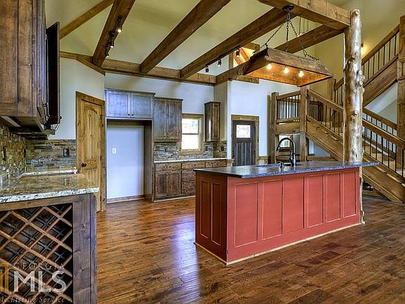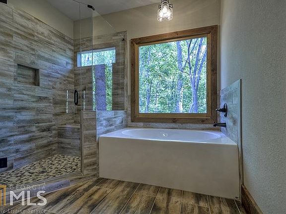 Historic Downtown Blue Ridge Living! Gorgeous modern rustic home within walking distance to all of the shops & restaurants in Blue Ridge. Custom design by James Klippel w/ modern touches, yet the feel of the mountains. Large rough sawn beams, cedar shake, custom stone work & hardy board exterior. HUGE covered decks w/ 2 sided outdoor wood fireplace. Open & inviting vaulted great room w/ wall of windows to take in the year round views. Home features 9ft ceilings, garage, gourmet kitchen w/ built in wine cooler, granite, Frigidaire Gallery appliance package & walk in pantry. Master on main, w/ walk in closet, tile shower, tub & dual vanities. 2 spacious bedrooms upstairs w/ Jack & Jill bathroom. Unfinished terrace level could have 2 more bedrooms.