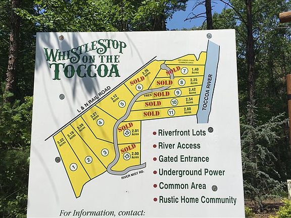 Beautiful 2.77 acre lot with creek frontage and also adjoins the community common area of The Whistlestop on the Toccoa Subdivision. Lot has seasonal view of the Toccoa River. Just minutes to Downtown Blue Ridge, Shopping and restaurants.