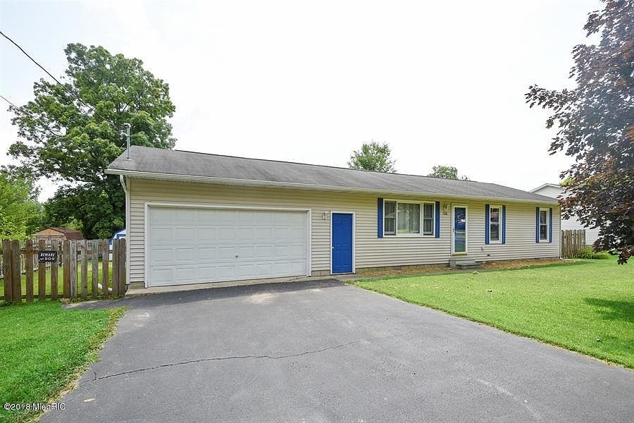 Fantastic location just short stroll to both Paw Paw Lake and Little Paw Paw Lake! This 3 BR 2 Bath offers master suite, large living room and spacious eat-in kitchen with sliders to 12 x 20 deck perfect for entertaining in private back yard. Oversized 24 x 28 attached garage perfect for your boat and toys. Back yard is fenced in with storage shed and privacy by woods!