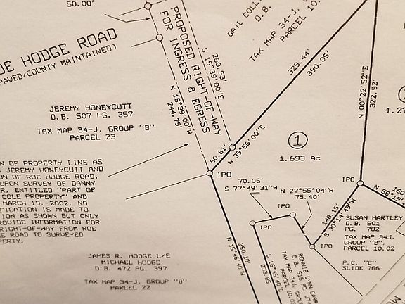 Vacant land to build your new home. Only county taxes but within 1 mile of Elizabethton city limits. 1.69 acres with 2 areas of entry. Beside 175 Lacy Hollow Rd and also a 50 ft easement at 138 Roe Hodge Rd.Best access to land is at the end of Roe Hodge Rd, see land and sign on right side of road.Electric, water at road. Buyer's agent to verify information.