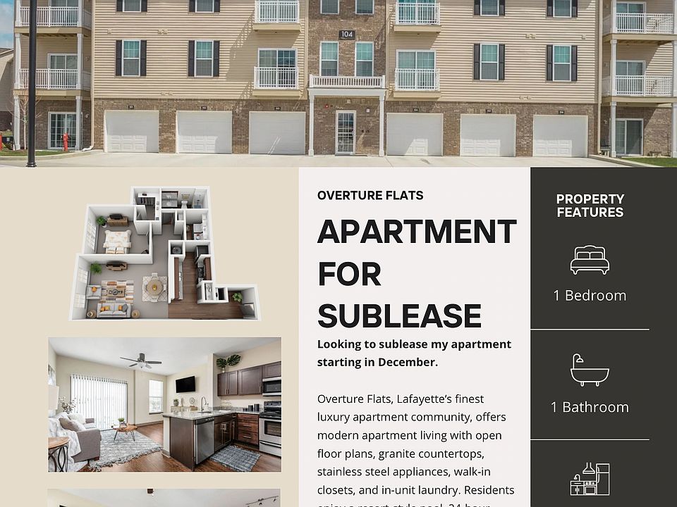 Location: Overture Flats, Lafayette just 15 minutes from Purdue's campus and conveniently close to shopping, dining, and entertainment.