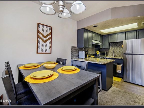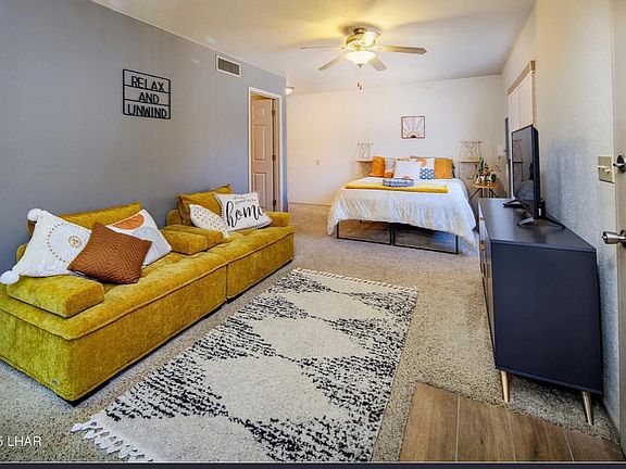 Are you looking for a cute, cozy place to live the Havasu life? Here is just the place for you! Located in the Rio Del Sol community, this charming upper-level studio condo comes fully furnished with everything you see, so just pack your swimsuit and toothbrush, and move right in! Unit 38 features an updated kitchen with a newer refrigerator, a spacious dining/living/bedroom area, and a full bathroom. You'll be just a few steps to the massive pool, spa, and Clubhouse with a lake view! The grounds are kept meticulously trimmed and clean, so you'll love lounging at the outdoor grilling areas or the covered patio at the Clubhouse. Rio Del Sol is right around the corner from some favorite Havasu bars, eateries and shopping. Scoop up this little gem, and live the Havasu life!!