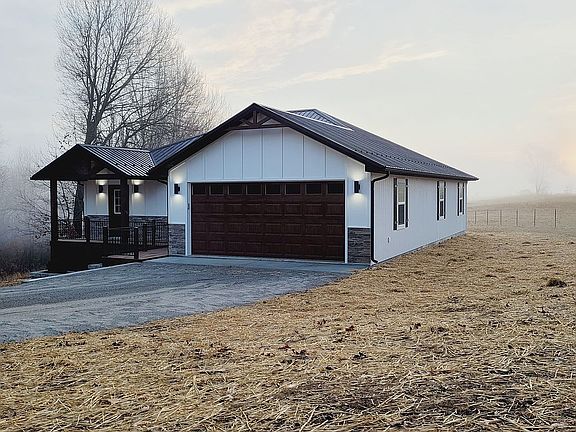 This property is in the Lake Imhoff Estates subdivision Northeast of California, MO. It is new construction home with about 2.5 ac (more or less) of property. Half of property is wooded. Nice private area with almost no neighbors visible from property. White LP smart siding and non maintenance black metal roof with stone veneer around the front, wood look garage door with timber frame porch and gable. This home has open concept kitchen living room, laundry room in entrance, 12x20 upstairs room that could be used for office or storage. 3 bedrooms and 2 baths with 2 car garage a total of 2100 sq feet. Central all electric heat and air and beautiful shiplap electric fireplace. All stainless steel appliances. Large side by side refrigerator with bottom freezer drawer. Lots of kitchen cabinets with large island and high resolution countertops. LED lighting. Laminate flooring in kitchen and living area, carpet in bedrooms and LVP in bathrooms. Public water and engineered state licensed septic system. CoMo Connect Fiber optic internet available at location. California School district. Access to the approximately 31 acre Lake Imhoff Lake allows for lots or recreational activities including boating and fishing with boat ramp, boat trailer parking and dock only available to members of Lake Imhoff Subdivision. Lots of wildlife including deer in the backyard. Don't miss out on looking at this very good property in a rural, country setting. GPS Coordinates: 38.66261 N, -92.51110 W