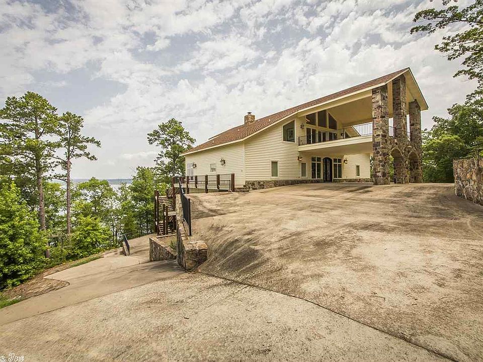 This 9,927 sq. ft. luxury home on 27 acres overlooks Greers Ferry Lake is very private, it has hills to climb and can entertain family and friends endlessly. The views are stunning. All 5 bedrooms are suites w/private baths. Wood and Travertine floors, 3 decks and 1000 bottle wine cellar. Custom entertainment system, 2 car garage, steps and paved path to stone patio and sandy beach at lakeside. The home is being sold fully furnished. No mineral rights. Must have code for gate and alarm code to show.