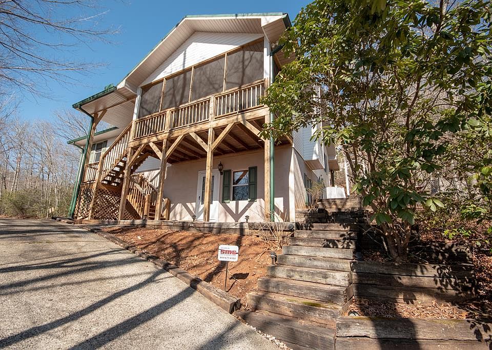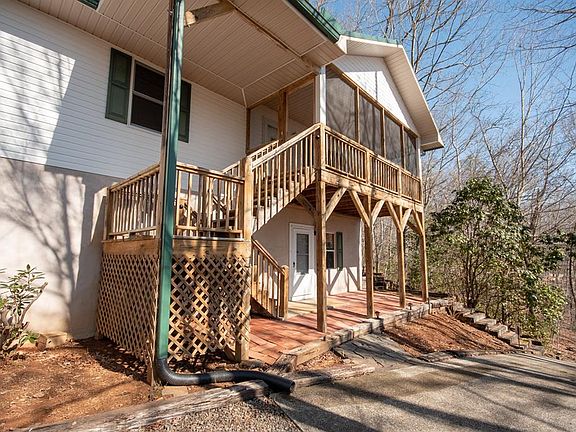 Sought after Trimont Mountain Estates, just 5 minutes from downtown Franklin. Insure your privacy with 2 Lots totaling 1.99 +/- Acres. Enjoy your morning coffee or happy hour afternoons from your relaxing Screened Porch, Covered Back Porch or numerous sitting areas around the property. Very easy access with circular drive, access to both levels and an awesome Oversized THREE car garage for weather free parking. Open Floor Plan has Sunny Eating area, Big Kitchen w/Island, tons of Cabinets and Workspace. Convenient Laundry Room adjacent to Kitchen. Spacious Living Room with Gas Log Stone Fireplace. Master Suite w/HUGE Walk In Closet plus another closet. Master Bath has Whirlpool Tub, Double Sinks and Walk In Shower. 3 Bedrooms, 2 Baths Main Level, Skylights in Kitchen and Master Bath. Lower Level has Partially Finished 26.8' X 15.6' Game Room/Workshop/Exercise Area with Full Bath and access to lower Covered Porch. Metal Roof. Original Owner. Home needs cosmetic updates...bring your toolbox and make it your own. For community information: trimontmountainestates.org