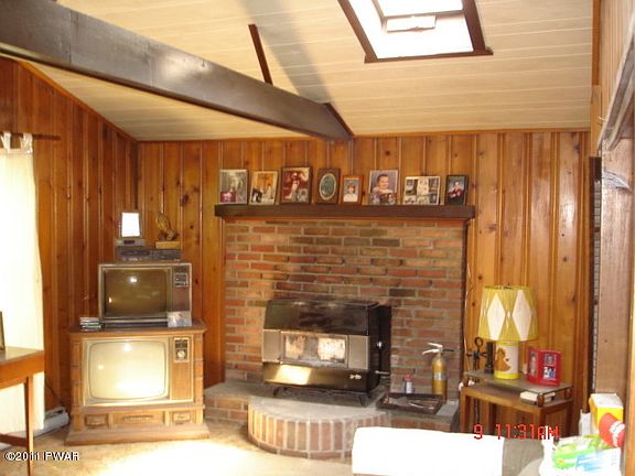 In all the right places! Loads of potential for the savvy investor. Needs some updating & TLC to bring back its original charm! 3 BR ranch w/ 1 bath, spacious LR w/ brick hearth, wood beams, & skylights. Beautiful knotty pine wall in kitchen & LR. 2 decks & basement. Sq. ft. is approx. CASH ONLY-HOME TO BE SOLD ''AS IS''