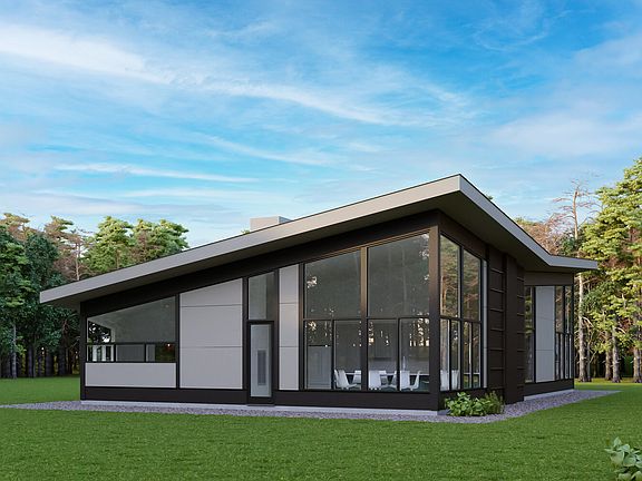 Please contact our sales office for a tour of the lot and our other projects in the neighborhood. Located on 4.5 acres in walking distance to the Ashokan Reservoir. Emperor is an efficient, mid-century modern take on Catskills' country living. Signature to the Mariposa series, the structure features a dynamic butterfly roofline. All 2,334-square-feet of this residence feature impressive scale, volume and character. Upon arrival, enter into an expansive open kitchen, living and dining area. A free-standing double-sided fireplace finished with cement stucco draws attention to the exceptionally high ceilings, emphasizing the ethos of Emperor; natural light and flowing space. Radiant heated floors throughout maintains a cozy feel to the home. Soaring walls of windows blur the lines between inside and out. The generously sized gourmet kitchen features custom hardwood cabinets by Mod, quartzite countertops, backsplash, and an island replete with supplemental storage; ideal for both everyday and occasional entertaining. The bedrooms, which feature hardwood flooring or honed concrete, are optimally positioned opposite the living area, offering maximum privacy and peace. The Master is comprised of a walk-in closet, an elegant ensuite bath that features a 72" soaking tub separated by a glass-enclosed curbless shower and custom double vanity with Grohe polished chrome fixtures. The guest bedrooms are spacious and can be modified to suit your needs. The additional guest bath features a double vanity and a glass partitioned curbless shower; the powder room is located in the open foyer. Finally, a conveniently located laundry room with side-by-side vented washer and dryer. All of our homes include central heat and AC, an HRV system, on demand water heaters, wiring for whole-house speaker systems, low voltage exterior lighting, zoned climate control, radiant heated floors, and customized finish choices such as tile, flooring and siding.