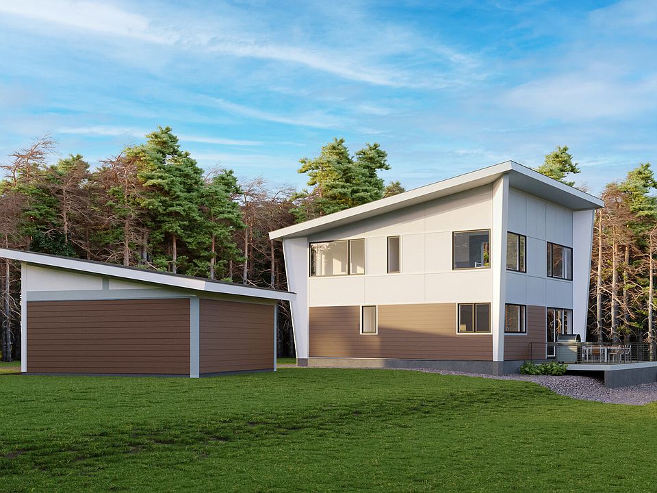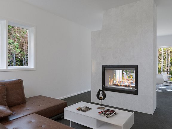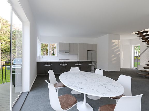 This is a pre-construction offering, with a completion date 10 months from closing. Visit an existing Apollo and get a feel for what's in store. Located on 4.5 pristine acres within walking distance to the Ashokan Reservoir. Apollo is the perfect fusion of country and mid-century modern. With over 2,100 intelligent square-feet, 3-bedrooms and 2.5-baths, Apollo offers functionality, volume, and character. The fully open first level features 10.5 foot ceilings, radiated heated concrete floors, a dining room and living area separated by a double sided fireplace, and an open kitchen replete with a breakfast bar and custom Mod cabinetry set beside a wall of sliding doors leading to a 500Sqft deck with stainless steel railing and gas & water ports for grill area. The kitchen featuring quartzite countertops is outfitted with café series appliances, including a gas range, vented hood and a French door fridge. The well appointed powder room is located in the foyer area. A steel central stringer staircase with hardwood treads leads you to the second level. The upper floor, featuring Carlisle birch flooring throughout offers three bedrooms, a master with an en-suite, two guest bedrooms, a guest bath and a laundry room. Boasting over fourteen foot ceilings, the master features corner windows, room from king, a walk-in closet and an elegant en suite bath featuring a 72 inch soaking tub, a wall mounted toilet, master tile work throughout with polished chrome trim, glass partitioned shower and a double vanity with polished chrome fixtures. The two guest bedrooms with ample space, each have corner windows. The laundry room with a vented washer and dryer is conveniently located in the hallway. The external fins conceal the recessed gutter system. Matching two car garage with radiant heated slab is included. All of our homes include an HRV system, on demand water heaters, low voltage exterior lighting, zoned climate control, radiant heated floors, and customized finish choices such as tile, flooring and siding. Our comprehensive design meetings held in our showroom simplify the selection process. Hudson River Homes strives to provide extremely efficient homes in a mid century modern envelope, built on site with materials sourced locally. Our preferred lender Ulster Savings Bank, offers a product in which a construction loan converts into a standard conventional loan upon completion, making the process accessible and affordable much like purchasing a resale. We estimate approximately ten months for the construction period from closing. Instagram at Hudsonriverhomes
