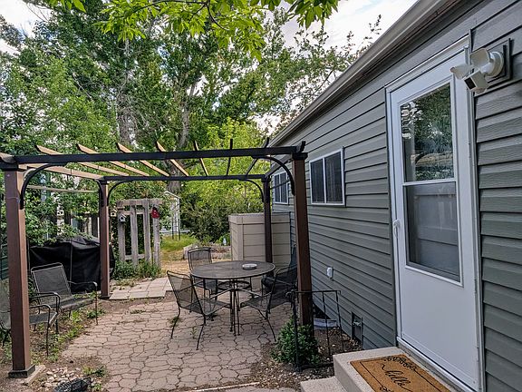 Full kitchen with stove/oven, fridge, microwave, coffee maker, and dishwasher. Kitchen is stocked with dishware, silverware, bakeware and more. Pergola and outdoor seating for enjoying those perfect Laramie nights.