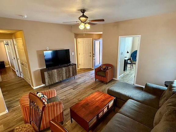 FULLY FURNISHED! Home offers an Open Floor plan, cozy, charming and stylish with all tile and hardwood floors. It also includes a TV, washer and dryer, ironing board, all dishes, pots and pans, silverware, Coffee Maker and all appliances. The backyard is very private with a covered Patio and furniture. This Home has it all for a very comfortable stay, and is conveniently located close to shopping, sports, schools, Farmers Market, Federal Building and Medical Facilities. Small Pets Allowed. One month minimum up to One Year Lease or longer, if needed.