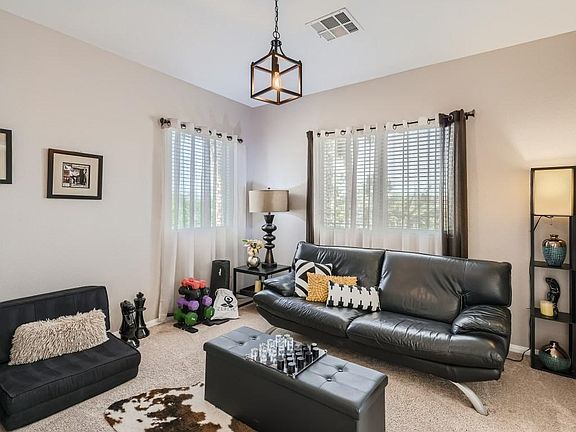 Beautifully Appointed 4 Bed, 3 1/2 Bath W/ 3 Car Garage In Southern Highlands. Gorgeous Outdoor Living Space w/ In-Ground Pool & Spa, Covered Patio. Great Upgrades including Tile Floors, Vaulted Ceilings; Custom Cabinets, Granite Throughout, Formal Dining Room, Island, Nook, and Breakfast Bar. Open Family Room W/Tons of Natural Light, Fireplace. Spacious Primary Bed Downstairs w/ Lovely Bath/Walk-In Closet. Fully Furnished and Ready to Move in - just unpack and go grocery shopping. Rent includes a Monthly Utility Allowance and Internet Services. In the Southern Highlands, Conveniently Located - Walking Distance to Shopping/Dining/Groceries. Reasonable I-15 Access. A Lovely Desert Getaway!