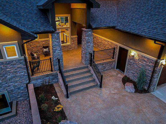 This dream home has every upgrade that you can imagine! Step inside from your grand covered porch to the open great room, featuring beamed 12.5' ceilings, floor to ceiling stone fireplace, and 8' doors throughout. Chef inspired gourmet kitchen including 36" gas range, pot filler, Italian cabinetry, 2 kitchen sinks, and a 10' expansive quartz island. The owner's retreat is a true oasis with outdoor deck access, stone gas fireplace, and a spa-like bath complete with soaking tub, deluxe shower and his&her vanities. The walk-in closet connects to the main level laundry/mud room which provides owner's retreat access directly from the garage. The main level is finished off with an addition en-suite guest room, a full hall bath, and a third bedroom/study. Experience the luxury of your own home elevator! Enjoy Colorado evenings on the covered deck with attached sun deck. The lower level continues the beautiful design and affords the opportunity for multi-generational living. Your walk-out basement showcases large windows and 9' ceilings throughout. The family room space has a 3rd fireplace, double patio doors, and full 2nd kitchen, full second laundry room and powder room. There are 3 additional bedrooms, each with private baths. And imagine the possibilities for the fortified space below the front porch which can be utilized as a wine seller, storage or even a safe room! Oversized garage w/50' RV bay. Class IV shingles, full stucco exterior, insulated garage doors.