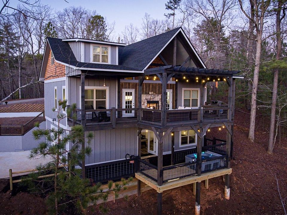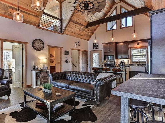 This Unique Quality Construction Mountain Home will take your Breath Away! The 3BR/3BA Rustic Modern Cabin really WOWs with a Beautiful mixture of Rustic and Modern Comfort~ featuring soaring cathedral ceilings, exposed beams, farmhouse light fixtures, floor to ceiling fireplace, tons of windows, upgraded kitchen and bathrooms, double decks, outdoor fireplace, and tons more! The Spacious Layout Offers Open Concept Living Room/Kitchen, Two Masters on Main Level, a Bonus Loft Area, and Finished Terrace Level with 3rd bedroom and bathroom. Located in sought after Walnut Mountain~ Amenities include Gated Entrance, Olympic Sized Swimming Pool, Tennis, Clubhouse, Community Fishing Lakes, Nature Trails, and Trout Stream.