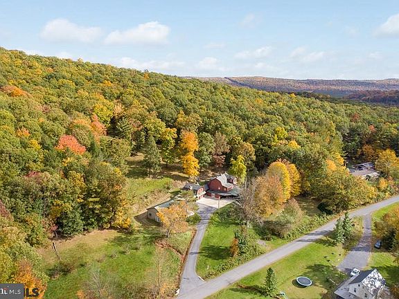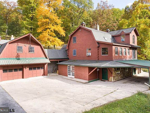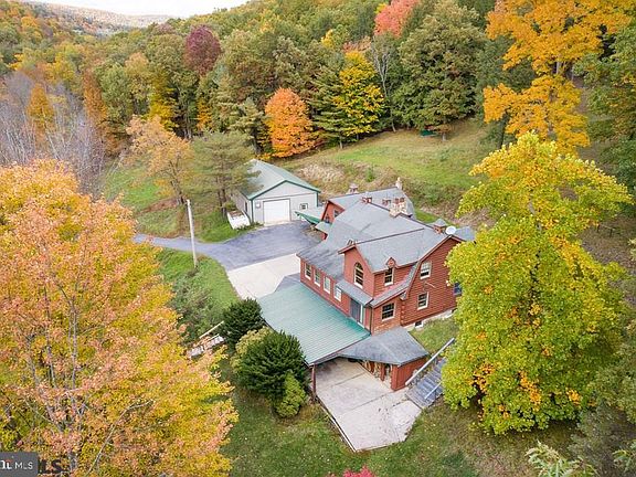 Secluded on over 7 acres perched on the hillside sits this 2 story cabin like home with 2 bedrooms and 2 full baths! Feel the warmth of home inside, from the rustic touches of the exposed wood beams and beautiful hardwoods throughout and views of the changing leaves and passing seasons from an abundance of windows. Lovely granite countertops line the kitchen along with island which also has built in seating and sink! Downstairs, creativity awaits! Find finished and unfinished spaces to use and create into a multitude of uses! Relax on the extensive deck from the swing overlooking the rolling hills in the backyard or tinker in one of TWO garages including a one bay with plenty of overhead space for lift or RV/Camper storage!