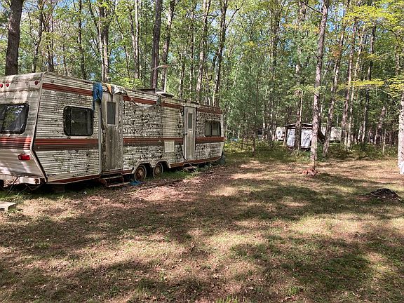 Great Northern Michigan Location close to area hunting and fishing. This heavily wooded 3.6+/- acre parcel has a hilly topography and adjoins Federal Land to the east. Close to the Pine River, there are two old campers on the property.