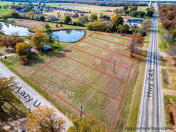 The opportunity to develop and build in Canton, Texas is here. Newly zoned Residential 2 with 10 acres (more or less) with large pond that has gorgeous views is now available. Residential 2 allows for minimum 7500 square foot lots on this acreage. New buyer will need to get approval for subdividing lots with the City of Canton. Seller has shown lot renderings on the pictures that show approximate boundaries of 7500 square foot lots with water views as examples only. Two existing entrances off of Hwy 243. The property is absolutely beautiful with the pond and trees and a terrific location to schools, downtown and First Monday activities. The lots shown as numbers 1-8 are currently in the A flood zone and will need some fill for elevation to build. Original brick home (not included in this sale) had an elevation certificate amended with FEMA and would be recommended for this area of the acreage. The future favors the bold and this opportunity in a community like Canton is rare.