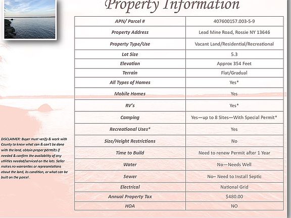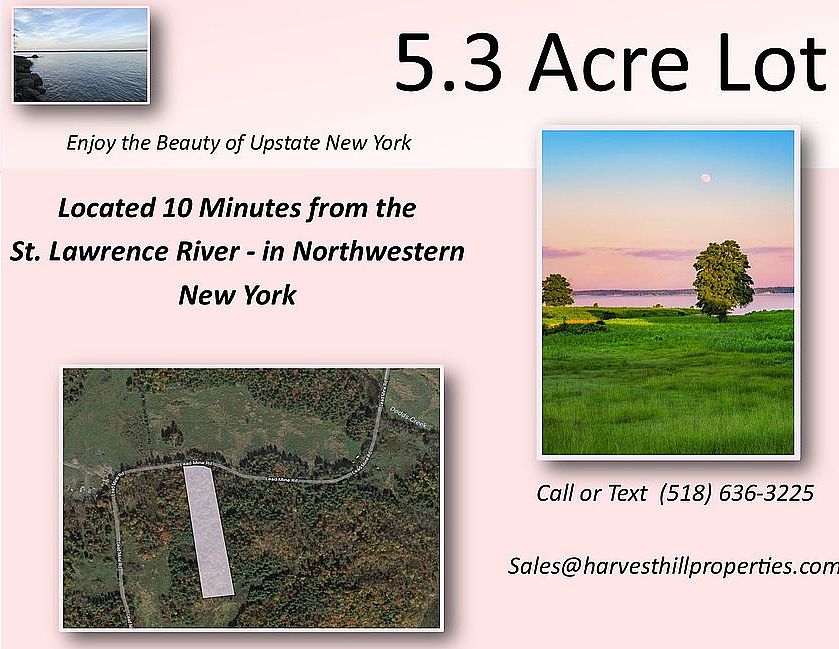 Discounted 5.3 Acres - Mixed Use Vacant Land! Come enjoy the privacy of these 5 acres in beautiful Upstate New York. Just minutes from the St. Lawrence River and Grasse Lake, build your dream or seasonal home or buy for recreation! * Purchase Options available!* Check out this video: https://youtu.be/DwI8UnGNBb4