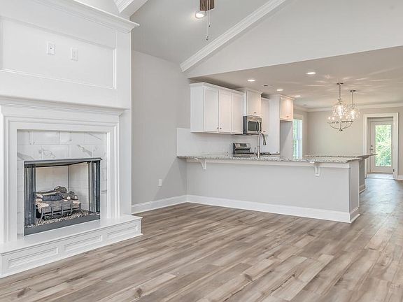 Simplistic and sensational, the "Kendrick" design offers fine details, all on one level with its attention to comfort and highly appealing use of space. Impressive great room with vaulted beamed ceiling and expansive space that offers a pleasant spot for family time or entertaining guests. Perfectly centered to the great room allowing open yet defined space, the kitchen is special in every way with granite island, custom cabinetry, and hardwood flooring. Separate master suite allows privacy for the owner from the guests or other occupants of the house. Covered rear patio is great for an outdoor retreat. The two car garage completes the amenities to this all inclusive plan.