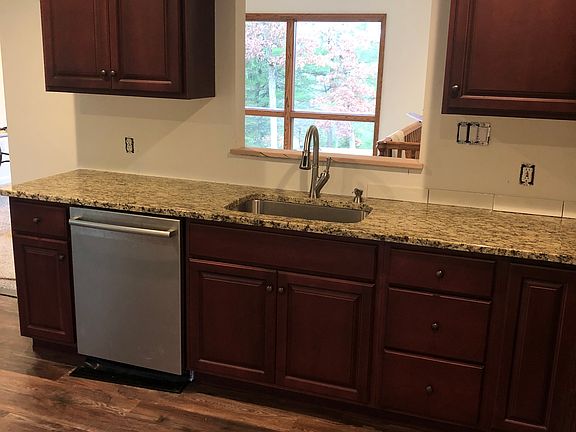Kitchen: Custom solid wood kitchen, soft close doors and drawers, lazy Susan, granite top with large under mount stainless steel sink, delta hi arc faucet w sprayer. Led recessed lighting and dimmable over cab lights. Plumbed for icemaker and has Bosch (super quiet) dishwasher. Tiled backsplash. All rewired for appliance and GFI protected circuits per UCC code requirements. (Stainless Fridge & Stove included but not in photo)